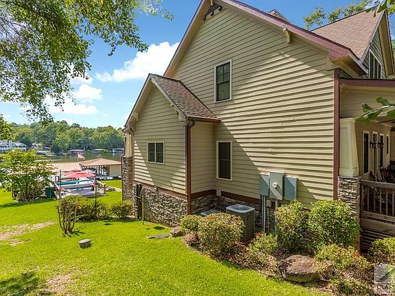 Gorgeous 4 BR 4 BA custom home with over 130' lake frontage. Privately owned lot not a lease! Two slip boat house with tin roof, Tyvec floor and 2 lifts and jet ski slip. In cove with quick access to main lake. Private endless lap & heated pool. Covered outside patio with grill, granite counters, & refrigerator. Screened porch with lake views. You might want to stay outdoors but inside is just as gorgeous. Den has fireplace with buck stove, kitchen with granite counters, Kenmore stainless appliances, Convection oven and propane cooktop, large pantry, Breakfast island with seating 4-6. Master suite on second level with large shower and walk in closet. 2 vanities with granite counter and tile floor. Den and kitchen area on lower level with 2 BR and 2BA.