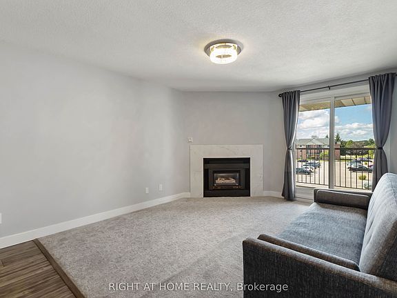 Beautifully renovated one-bedroom apartment located in the sought-after White Oaks community, offering convenient access to Highway 401 and a wide range of nearby shopping and amenities. Situated on the top floor, this unit showcases bright west-facing views and a spacious open-concept living and dining area with a cozy gas fireplace and walkout to a private balcony. The home features a modern kitchen and bathroom, upgraded with luxury vinyl flooring and high-quality carpeting throughout. Thoughtful updates include all new doors, trims, and light fixtures. Additional highlights include stainless steel appliances, a convenient in-suite laundry closet, and a versatile pantry/storage space.