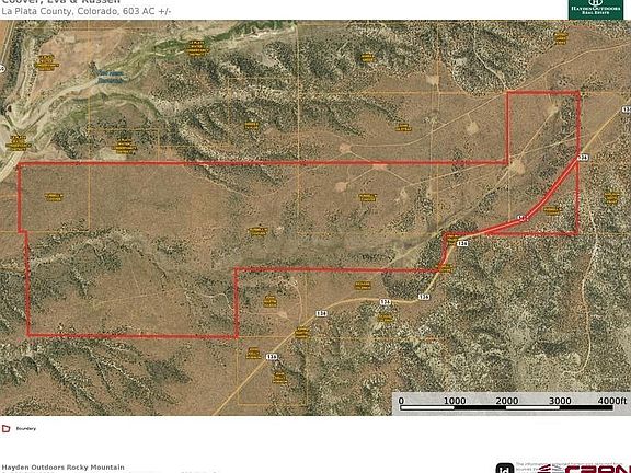 Bragg Draw Ranch is 603 acres that is a very private and secluded off grid property. No Covenants, No HOA, and No Conservation Easement. The property offer good hunting and recreational opportunities. Bordering Longhollow Reservoir to the north, and thousands of acres of Southern Ute Indian Land to the south, this acreage is very private and covered up with all kinds of wildlife. This land has year round access, excellent views, fabulous privacy, many varieties of wildlife, and diverse topography consisting of pinon and juniper woodlands, canyons and draws. The sellers have found multiple artifacts on the property from when the Anasazi Indians roamed this land. This is an off-grid so plan on solar, propane, well and septic. Elevation is 6400' in a high desert climate with great southern exposure. This property benefits from low ag taxes of less than $200/year. This is Colorado GMU #741 where you can purchase over the counter bull elk tags in the 2nd & 3rd rifle seasons. Cow elk and mule deer are by draw only. In addition to your normal hunting tags, this property also qualifies for additional Colorado Land Owner Tags. The Seller has 1 water tap reserved through La Plata West Water Authority for the future water line that is anticipated in this area. Contact LPWWA for any questions regarding when the water line will actually be brought to this property. COGCC has removed gas equipment from the pads on the property and is currently reclaiming the land at the gas pads. They will be abandoning their road easements as well.