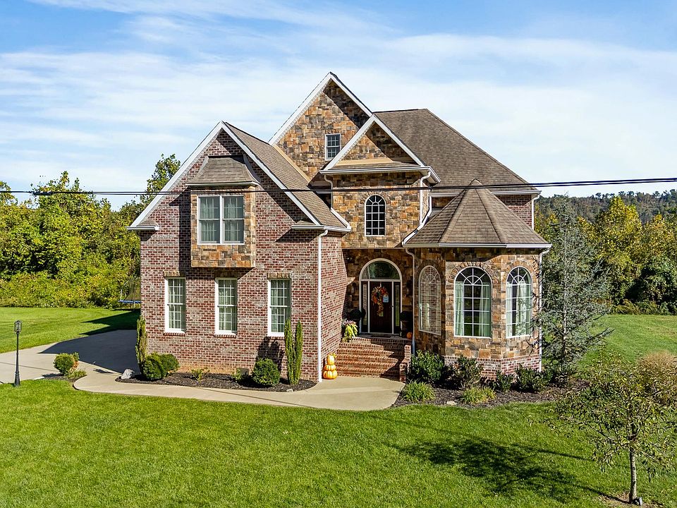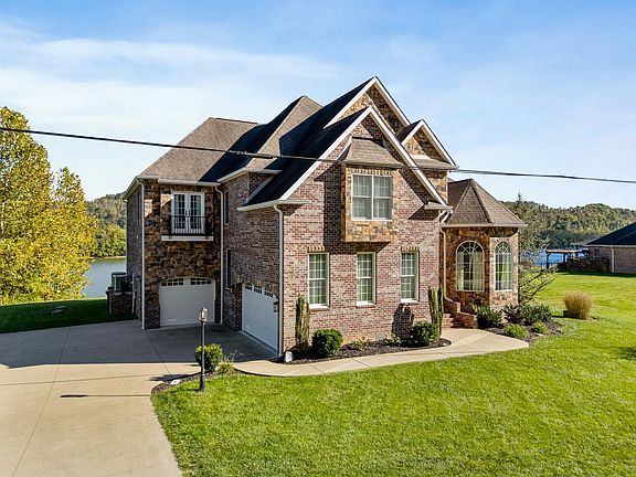 Experience the beauty of life on the Ohio River in this stunning 12 room home offering 5 spacious bedrooms and 4.5 baths. With plenty of room for family and guests, this property combines comfort, charm and breathtaking water views. Situated on 1/2 acre riverfront lot with ample entertaining space overlooking the river. This gorgeous brick/stone home has so much to offer with a grand entry, beautiful hardwood floors, eye catching wrought iron railings, soothing grey walls with tons of natural light. Impressive Creative Kitchens stainless appliances and granite tops. Striking gathering room with dramatic cathedral ceilings, cozy fireplace with built-ins. Convenient 1st floor bedroom could be used as a den/office with a full bath. Remarkable owner's suite with trey ceilings, walk-in closet and dreamy owner's bath with soak tub and dual sinks. Multiple covered porches to enjoy spectacular views or a community pool to play in. Modern Nest thermostat and security cameras. Two car attached garage and 1 car/lawn equipment garage. Nice manicured level yard. Aprox. 15 minutes to Huntington.
