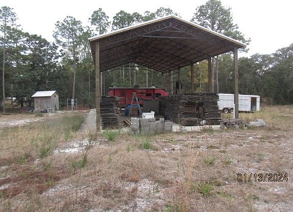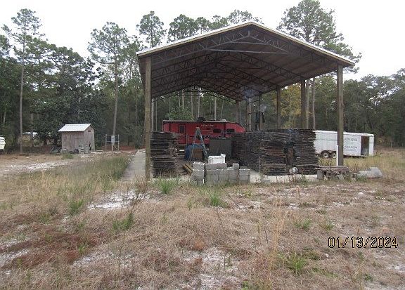 One acre lot with pole barn. Pole barn is 30 X 60 X 18 and slab is 40 X 80. Storage building with washer dryer hook ups. Septic tank and city water. Milled Wood (Not Treated) under barn to enclose pole barn. 200 amp power for RV hook up. Close to beach and boat landings. Short drive to St George and Apalachicola. Build your dream home here. Take a look today.