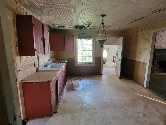 This 1 story hip-roofed Federal/Greek Revival style house consists of an original T-plan of 2 front rooms arranged about a center hall.Early shed-roofed additions filled in the space on either side. The house retains plain wood weatherboards, & 9 over 9 sash wood windows.The P.E. Hervey House is on the State & National Registry of Historic Homes. Built in the mid 1850's,it has 12' ceilings,2 br's w/ fireplaces, kitchen, laundry room, DR with fp, large entry and sitting room. The side porch leads to the bathroom.The .75 acre lot goes from Dobbs Street to Highway 301.The historical sign in the yard shows its' place on the historical tour at one time.There are a few radiant wall heaters, but there is no heat/air.The house needs work, but can be a beautifully restored home with history!See NC State Historic Preservation Office & NC State Building code – Historic buildings – chapter 12.