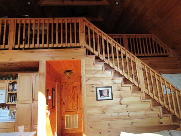 Beautiful Log home, privacy with long range views of Parkway , home is surrounded with wild mountain laurels, nicely landscaped spacious grass yard for you to enjoy during summer months with privacy, yet easy access year round. This home offers tongue & groove ceilings and pine floors. There are ceiling beams on main level and loft, with cathedrals ceilings, 8 inch logs with stone fireplace reaching to the ceiling including French doors on each side of fireplace. The windows reach to the ceiling to add light. Kitchen has slide out pantry with Corian counter tops, deep drawers and open floor plan to the living and dining area. House is perked for 2 bedrooms, but with large lot, possibly can be expanded to 3 bedrooms. Owners have room finished downstairs as a bonus room or could be used as an office. Heat Pump 3 years old. Home has 2 decks, one on side that stretches from one end to other, to enjoy spectacular views and hanging out with the chef on the grill cooking and enjoying the sounds of nature. Also another deck on the front. Minutes to Boone, Wilkes and West Jefferson.