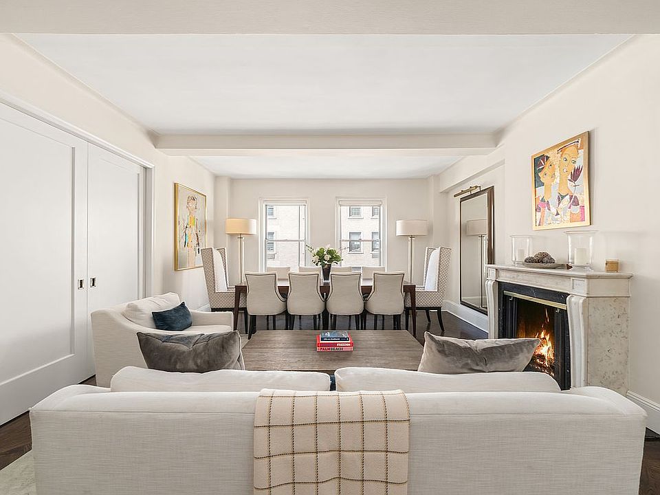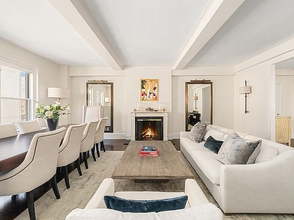 Meticulously renovated classic prewar seven room home, in one of the Upper East Side's premier full-service coops buildings. Located on a serene, tree-lined block, this gracious triple mint 3 bedroom, 3 bathroom home features elegant prewar details and gorgeous finishes in an unbeatable Upper East Side location. From the moment you enter, you're welcomed by a grand entry foyer that opens into a sprawling sun-drenched living room with herringbone hardwood floors, soaring 9'3" foot-high beamed ceilings and a functioning working fireplace. The sunny spacious formal dining room is perfect for entertaining. The windowed eat-in kitchen has been tastefully renovated, featuring custom cabinetry, Caesarstone countertops, and designer stainless-steel appliances including a Viking stove, Subzero refrigerator, Miele dishwasher and Miele WASHER DRYER. The primary suite offers tranquil privacy, comfortably accommodating a king-sized bed and offering ample storage with custom built-ins and large closets. The ensuite windowed primary bathroom features elegantly outfitted marble and stone tiles. The spacious and sunny second and third bedrooms both feature ample storage and can accommodate king-sized beds. Add to this, two additional well-appointed bathrooms, and a well designed efficiently laid out staff room. Additional highlights include abundant closet space, gorgeous hardwood floors throughout and a large storage room in the basement. Located at 136 East 64th Street , a distinguished white glove service co-op with a 24-hour doorman, live-in super, private storage, laundry facilities, and a beautifully maintained lobby. This apartment is truly special.