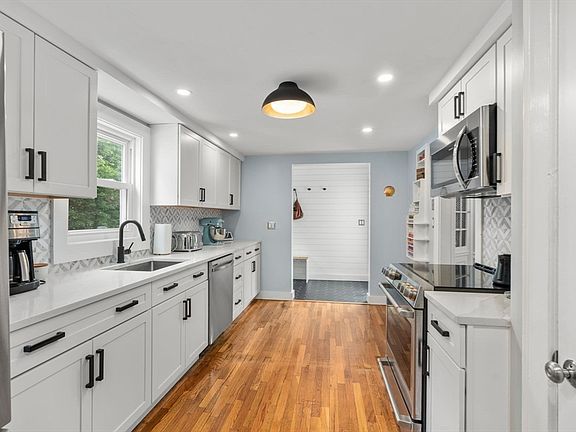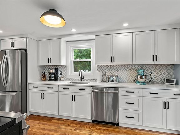 Wow! Nothing to do but move right in to this storybook, cape style updated home. The main level offers a new Kitchen (2021) featuring white shaker cabinets, quartz counters & stainless steel appliances; Adjacent Dining rm w/corner built ins; front to back Living rm w/stone hearth fireplace & access to deck; Full bath w/stackable laundry (2020); fabulous new mudrm w/shiplap & tiled floor complete the 1st floor. Upstairs you'll find 3 bedrms & new full bath (2024). Hardwood floors throughout (excluding baths & mudrm); Loads of updated lighting fixtures including plenty of recessed lighting; Harvey windows; low maintenance vinyl siding; NEST thermostats; composite deck/stairs; ample storage in the walk out lower level (formerly a garage); exterior shed & fire-pit area perfect for evenings outside. Conveniently located near most major routes, shopping (Legacy Place & University Ave), schools, restaurants & commuter rail. Welcome home!