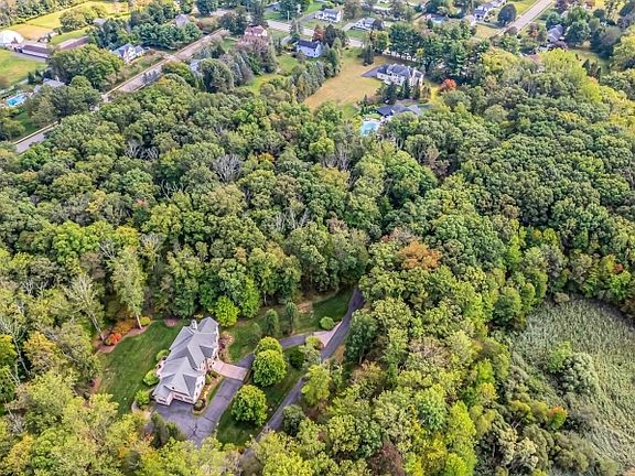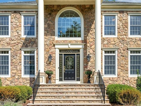 Distinguished stonefront Gallagher colonial, tucked away on wooded 3-acre lot & offering rare combination of public utilities & natural gas! Turnkey home w/ gracious floor plan showcasing soaring ceilings, gleaming hardwood floors on main level & custom millwork. Chef's kitchen features elegant cabinetry, granite counters, center island w/seating, stainless steel appls, dual pantries & sun-filled breakfast rm. Adjoining family rm w/ gas fireplc & tranquil sun room provide warm & seamless extension of living space. Formal dining for entertaining, welcoming living rm & private home office w/ French doors complete main level. Luxurious primary suite offers tray ceiling, sitting rm w/access to private balcony, spa bath w/ Jacuzzi tub & stall shower, plus enviable walk-in closet w/ access to massive walk-in attic for storage or future expansion. 3 add'l spacious bedrms upstairs, including 2nd primary suite w/ private bath & walk-in closet, plus another bedrm w/ private access to pristine hall bathrm. Finished lower level impresses w/ high ceilings, Berber carpet, spacious rec rm w/ oversized, light-filled windows, exercise/flex rm, abundant storage, & plumbing for future bath. Outdoor living is equally refined w/ expansive deck, fenced yard & mature landscaping framing tranquil woodland views. Full-property sprinkler system, including flower beds, ensures vibrant yard & gardens. Home warranty included. Don't miss the opportunity to make this exceptional property your forever home!