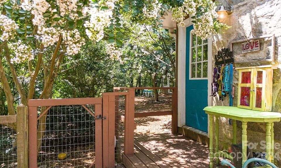 Tranquil and unique indoor and outdoor spaces create the colorful settings that invite you into this charming Cottage. The great outdoors are fully fenced for family and furry ones to play away the day. The setting welcomes you to stay home and relax in the country, yet amenities are but a hop and a skip away. The Cottage sits between Asheville and Hendersonville, affording guests an easy drive to these special towns. Hiking, waterfalls and the serenity of Nature in the mountains flourish nearby.