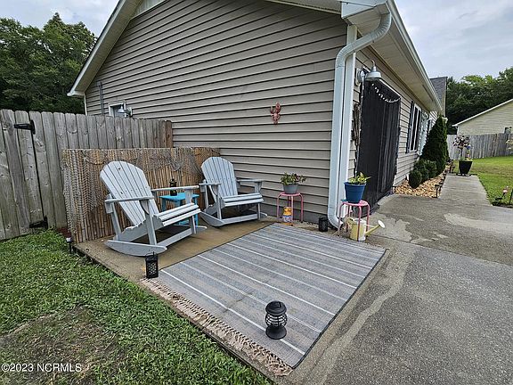 Wonderful 3-bedroom 2 bath home nestled at the end of a cul-de-sac in a quiet neighborhood. The backyard backs up to trees giving you ample privacy along with the fencing that separates you from your neighbor while you enjoy the gorgeous Hydro Spa. Just off the main 10x20 deck is a paved area perfect for your grill and smoker for outdoor cooking. There is a shed that has electricity ran to it for your power tools to be used in. This backyard is an oasis perfect for entertaining. Just at the tree line is a fire pit, perfect for you and your guest to make S'mores. The home also has a whole home water softener. There is a new HVAC system that is less than a year old. The living room windows were replaced this past spring. You are just minutes from the beaches of Emerald Isle, shopping and dining in downtown Swansboro or Jacksonville; not to mention being a short drive to the back gate of Camp Lejeune off of 172.