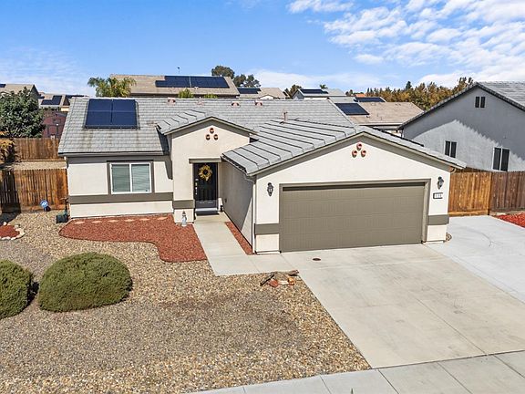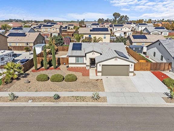 Welcome to this gorgeous 3 bedroom, 2 bath home built in 2019, where pride of ownership truly shines! Meticulously maintained and move-in ready, this home truly has it all modern comfort, style, and care in every corner. Enjoy peace of mind and energy savings with paid-in-full solar and a paid whole-house water filtration system. The security system and cameras are included, making this home as safe as it is beautiful. Outside, you'll love the low-maintenance rock landscaping, custom pergolas, drip irrigation system - front and back, and expansive concrete work, offering plenty of space for entertaining, relaxing, or play. The large backyard and side yard provide room to host gatherings, or simply unwind. You won't want to miss out on this fantastic opportunity to call this house your home!