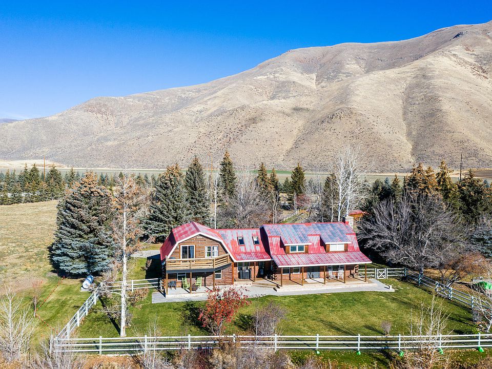 Charming, serene, and private, this 3BD/2.5BA log home rests on 5+ acres with wide-open vistas and a seasonal canal along the west boundary. The home offers an inviting blend of rustic elegance and modern comfort across two levels, where warm log craftsmanship and radiant-heated concrete floors create an elevated yet cozy atmosphere. The property features a 1,500 sq. ft. shop with 2 garage doors (one 10' door), a horse stable, and expansive open land ideal for animals, gardening, or future projects. A rare combination of tranquility, space, and refined log-home living.