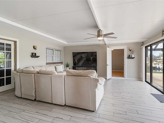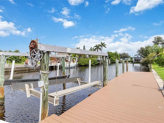 Welcome to your dream waterfront retreat! This beautifully maintained 3-bedroom, 2.5-bath pool home with a den/office is a true boater’s paradise, perfectly situated on a saltwater canal with direct Gulf access. A massive 48-foot-wide composite dock with electric, lighting, snook light, and TWO boat lifts offers plenty of room for boats, jet skis, and all your water toys. Inside, you’ll find a formal living room, formal dining room, and an open kitchen featuring granite countertops, stainless steel appliances, a pantry, and a pass-through bar for easy entertaining. The versatile den/office provides extra space for work or leisure. The spacious master suite includes dual closets and a spa-inspired bath with a walk-in shower, while guest bedrooms are generously sized. A laundry room with built-in cabinets and storage adds everyday convenience. The backyard is designed for relaxation and fun, showcasing a screened-in pool with tanning ledge, bubbler, and unobstructed canal views through a panoramic screen enclosure. A dedicated BBQ patio space and sun shade create the perfect setting for outdoor gatherings. The fenced dog run ensures your pets enjoy the space too. This home is well-kept with fresh paint, updated hurricane protection, and a NEW ROOF (2022). Its central location puts you close to shopping, dining, and Gulf beaches—making it ideal for year-round living, a vacation retreat, or an investment opportunity. This is a MUST-SEE HOME—call today to schedule your private tour!