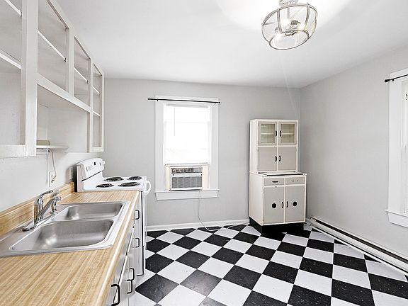 Built in 1920, the 812 sqft top-floor apartment is set within a multi-family home and offers a private entrance, living room with painted wood floors, an eat-in kitchen with a stack washer/dryer, two comfortable bedrooms with brand new carpet, and a full hall bath. On-street parking is available. Window ac units are provided.