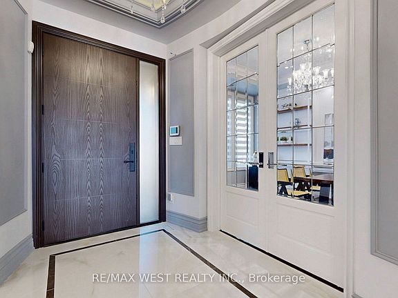 Welcome to an extraordinary opportunity to own a breathtaking 6,000 sq. ft. executive residence, completely transformed in 2024 with over million in premium renovations, epitomizing modern luxury living. Set on a wide and deep estate lot, this architectural masterpiece boasts 10' ceilings on the main floor and 9' on the second. Exquisite designer finishes include custom crown moulding, high-end porcelain tiles, engineered hardwood, new chandeliers, a stunning floating staircase with gold columns and glass railings, decorative ceilings, fresh premium paint, and elegant trim. The gourmet chefs kitchen offers quartz counters and backsplash, ceiling-height cabinetry with glass doors, under-cabinet LED lighting, professional appliances including a cooktop, built-in fridge, dishwasher, double oven, wine fridge, expansive island, custom pantry, and mudroom cabinetry. The main floor features a private office with French doors, a dramatic family room with a custom stone fireplace and sound system, a custom mudroom with quartz finishes, new washer and dryer, a grand entrance door, a chic powder room with Wall Mount toilet, a spacious breakfast area opening to a large loggia balcony. Upstairs are four luxurious bedrooms, each with elegant ensuite baths and custom walk-in closets. The primary suite dazzles with a lavish 7-piece bath featuring a freestanding tub, glass jet shower, dual vanities, smart toilet, built-in makeup desk, fireplace, sound system, coffered ceiling, and private balcony. The finished walk-out basement includes a home theatre, stylish bar with built-in TV, full kitchen with stainless steel appliances, additional living space, hot stone sauna, electric fireplace, and a 3-piece bath with smart toilet. Step out to a private resort-style yard with a heated saltwater pool with Hayward automation, 6-person hot tub, and a spacious entertainment area. Upgrades include new mechanical systems and premium zebra blinds throughout.
