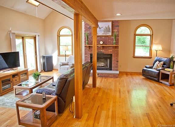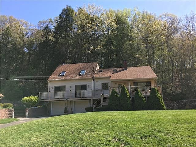 This property boasts 1.5 acres, over 2100 square feet of living space, a 2 car garage under the house as well as a detached garage that is heated and cooled with 4 bays. The original house was built in 1950 and purchased in the 1980's by the present owners who over time, have improved & expanded it. Solid surface counters and solid wood cabinets are found in the eat in kitchen, a formal dining room, a formal living room, first floor bedroom and dressing area, full bath and a massive great room complete the first floor. The great room has a fireplace, vaulted ceiling, ventilated skylights and sliders to a composite deck. Two additional bedrooms are located upstairs. The master bedroom boasts skylights and leads to a full bathroom, loft and sitting area, which overlooks the great room. This house is heated by an oil forced air heating system and cooled by a newer central air system. There are dual oil storage tanks, a 200 amp electrical service and a generator panel for easy hookup. The architectural roof, septic tank, fields and 150 foot deep well were replaced. Located in beautiful West Granby, close to local fishing spots, hiking trails, downhill skiing, locally grown organic vegetable farms and csa's, farm to table restaurants and local vineyards, we're sure that you'll be as excited as we are with this great property.