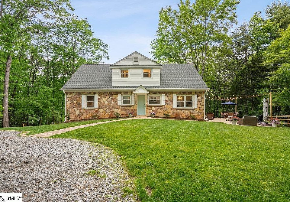 BACK ON THE MARKET AT NO FAULT OF SELLER! This charming, stone cottage is nestled on a spacious 3 acre lot in the quaint town of Landrum. The home features 4 bedrooms, 3 full baths and a freshly remodeled interior that is completely move-in ready. As you enter the home, you'll instantly be captivated by the beautiful mountain view showed through the large, updated windows. Glistening, original hardwood floors flow throughout most of the living space. The kitchen features quartz countertops, stainless steel appliances, updated cabinetry, and all new lighting. The floor plan is super functional with dual master bedrooms. The main level master has multiple closets and connects to another room that would be ideal for a nursery, office, or additional bedroom. The second level master features two large, walk-in closets and a newly renovated full bath with high-end tile floors, shiplap walls, and vanity. Come and enjoy the warmth of the cozy fireplace in the living room, or relax in the sunroom overlooking the peaceful scenery around you. The fully fenced yard is beautifully landscaped with camellias, azaleas, hydrangeas, dogwood trees, mountain laurel, and so much more! The spacious, stone patio provides the perfect setting for both outdoor entertaining and relaxation. Conveniently located close to shopping, restaurants, D1 schools, and entertainment, this property is the perfect mix of tranquility and accessibility. Don't miss your chance to own this little slice of paradise. Call today!