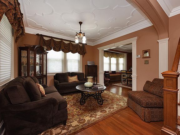 This Charming Craftsman style home has retained it's exquisite, original details while being updated to today's lifestyle! You will immediately be greeted by the homes fabulous custom moldings in the inviting enclosed front porch and by the intricately detailed ceilings through out the first floor living space. The jaw dropping chefs center Island kitchen along with beautifully updated baths only enhance this homes appeal! Additional features include a full finished basement, gas heat, hardwood floors. Situated on a fabulous 55x207 property with detached two car garage in sought after Merrick Woods.