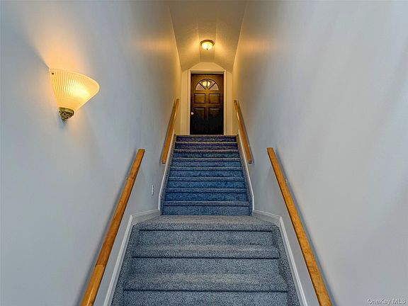 Updated Town of Newburgh Stonybrook top floor end unit condo is move in ready and waiting. This unit has a great room for entertaining. The living room and dining room have dark wood flooring, 9-foot ceilings and crown molding. The kitchen has granite counter tops, updated appliances, a bay window for natural light and opens into the living room. The dining room opens to the Juliette balcony that overlooks the open space lawn. There is a stackable washer/dryer in the hallway for convenience. The bedroom has vinyl wood like flooring and a whole wall closet and is currently being used as an office. The main bath has a full tub and half tiled walls. The carpeted primary suite has a tray ceiling, bay window overlooking the rear lawn, main vanity, private shower and toilet room and walk in closet. The one car garage has a room in the rear for additional storage. The complex is tucked away from the main road and features a club house, in-ground pool with patio and tennis/pickleball courts. Conveniently located near Route 84, NY State Thruway, Stewart International Airport, Shortline Bus Terminal, Metro North Train Station in Beacon. Close to schools, shopping, restaurants, Newburgh waterfront and Resort World. Come take a look.