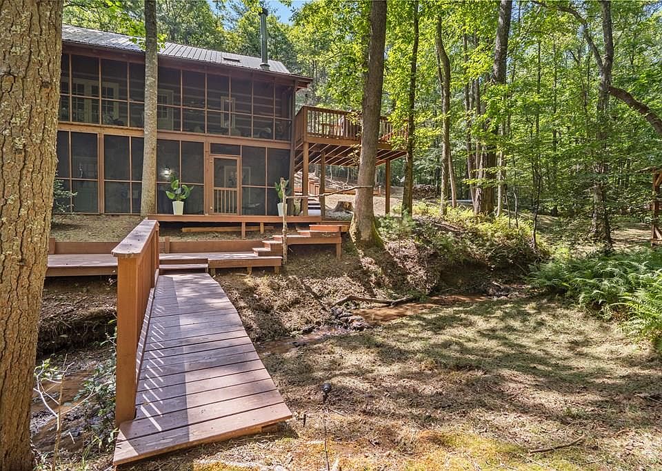 Charming Chink Log Cabin in Tranquil Country Setting – Your Perfect Getaway! Nestled in a peaceful, country environment, this beautifully crafted chink log cabin offers the ultimate retreat for nature lovers and outdoor enthusiasts. Situated on a serene property with a glistening creek running throughout your backyard, this home combines rustic charm and character. This Chink Log Cabin with beautiful stone fireplace and cathedral ceilings. Home offers 3 bedroom, 2 bath with 1755 sf of living area. The upgraded kitchen and screened porches on each level are open and ready for entertaining. The finished basement offer more living area for guests. There is also a spacious loft for your cozy reading library or a home office. As you step outside, you'll find a firepit area – perfect for cozy evenings spent under the stars, roasting marshmallows, or enjoying a warm drink. Whether you're winding down after a day of adventures or simply soaking in the serene ambiance of the outdoors, this peaceful setting is ideal for relaxation. For those who love to explore, you're just a short distance away from hiking trails, and if you're into water activities, the Toccoa River is right around the corner, offering opportunities for tubing, fishing, and more. The area's natural beauty provides the perfect backdrop for all your favorite outdoor activities. Whether you're looking for a weekend retreat, a full-time residence, or a vacation rental, this property offers a unique combination of comfort, privacy, and adventure. Make this chink log cabin your escape to tranquility today!