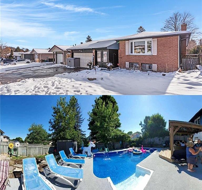 Dive into comfort and style with this dazzling 4-bedroom, 2-bathroom raised ranch bungalow at 136 Limpert Avenue, nestled in one of Cambridge’s most sought-after neighbourhoods! Step outside to your private oasis – a stunning inground pool surrounded by brand-new Soft Creek rubberized flooring that’s as gentle on your feet as a summer breeze. Imagine pool parties, sunny afternoons, and endless fun! Need extra space? A massive 10 x 16 shed awaits your hobbies or storage needs. Relax in the ultra-modern hot tub, framed by sleek new fence and deck accents that blend durability with chic design. Your fresh driveway makes every arrival grand, while new gutters and windows boost energy efficiency, keeping your home cozy year-round. Enter through inviting new front double doors into a bright, open foyer layered with pristine new flooring that stretches throughout both levels. Whip up culinary delights in a chef-worthy kitchen boasting a grand island, gas stove, and a charming coffee bar — perfect for fueling your mornings. Refresh in a brand-new bathroom and breeze through laundry in a stylish updated room designed for ease. The basement shines with a new ceiling and pot lights, creating an inviting space for gatherings, movies, or creative pursuits, all protected by elegant, sturdy new railings. Winter won’t stand a chance with the Rhino pool cover safeguarding your aquatic retreat, paired with an owned new hot water heater ensuring uninterrupted comfort. This home is a showcase of fresh finishes and thoughtful upgrades, wrapped in an unbeatable Cambridge location — ready for your next chapter filled with laughter, relaxation, and unforgettable moments. Your dream home awaits!