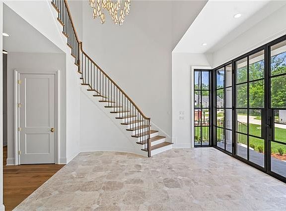Three-car garageDesigner powder roomCustom white-oak cabinetrySteel and glass entryDedicated officeHigh-end light fixturesMarble-clad bathroom