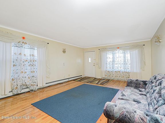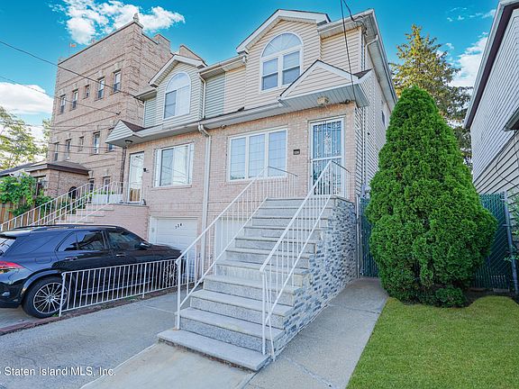 Welcome Home to 136 Lyman Ave! This well maintained 3 bedroom, 3 bath home is nestled on a quiet block in the heart of the Fort Wadsworth area. Easy access to the expressway gets you to the VZ Bridge in just a few short minutes. This spacious duplex features hardwood floors throughout, creating a warm and cohesive feel from top to bottom. The inviting living room leads to a separate dining room which is adjacent to the Eat-In Kitchen, perfect for entertaining, large windows fill the space with natural light. The eat-in kitchen features oak cabinetry with granite countertops and a tile backsplash, center island offers plenty of room for casual dining and leads directly to the backyard-ideal for summer gatherings. A convenient half bath is located on the first floor, along with access to the basement. Upstairs you'll find three generously sized bedrooms. The primary bedroom features a vaulted ceiling and private access to the main 4 piece bath with a large jacuzzi tub. The attic offers additional storage space. The full finished basement provides a versatile space with lots of potential for a family room, home theater, or home office, three-quarter bath, laundry, and access to garage, plus utilities and side door access to the yard. No need to fret about parking, pull right into your driveway, park in your garage, and lots of available street parking. This home is complete with two heating systems (baseboard hot water heat and forced hot air), as well as central air, and solar panels. Make this house your home!