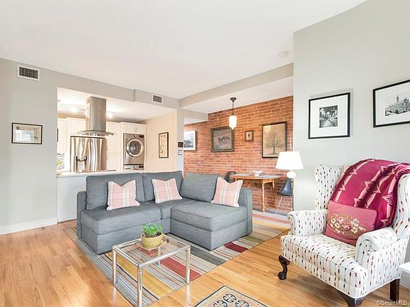 You are going to love this condo, which was remodeled completely in 2019 to include new floors, walls, stainless appliances, a walk-in shower and a central air unit This landmarked 1880 building is steps away from Peppercorns, Salute, the Wadsworth, live theater, the Civic Center, the Yard Goats and Bushnell Park. The open floor plan reflects the way we live today while the wood burning fireplace and the exposed brick wall provide an historical touch to this home. The French doors open to a covered balcony overlooking Main Street from which you can cheer on the runners in the Hartford Marathon. Laundry machines are conveniently located within your unit. The back bedroom has a door to the three season porch, which was remodeled with new windows and Trex flooring. Unit B2 comes with a deeded parking space in a gated lot and a 9 X 7 storage space in a dry basement. The $220 monthly condo fee makes this place an affordable option for those looking to experience downtown living at its best One of the owners is a real estate agent.