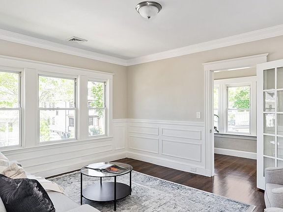 LOCATION is the key! A real gem in the city. Walking distance to commuter rail. Fulfills residency requirements for Boston Latin. Quiet but not far from the shops, restaurants, and grocery stores. Newly renovated throughout. Rich and dark stained hardwood floors, crown moldings, and contemporary lighting creates stylish comfort. The sun-filled living room with wainscoting features a bright and peaceful sunroom. Brand new kitchen with plenty of storage space features top of the line appliances, gas range, white kitchen cabinets, and quartz countertops - making cooking at home a joy. The kitchen opens up to the dining room, built-ins, and picture windows. 2 bright and comfortably sized bedrooms. Tiled bathroom has a large vanity. With an extra room/office, you can turn this flexible living space into a comfortable spot you'll love. Forced air heating and cooling brings comfort in any season. Detached garage parking and large porch. Schedule your private viewing today!