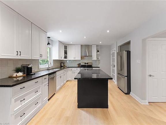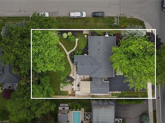 Enjoy... This Charming Home... Your Own Private Retreat... Nestled on a spacious, tree-lined corner lot, at the end of a quite dead-end, offering the perfect blend of town convenience and natural tranquillity along with parks and trails making it most a desirable location. Step inside and be greeted by bright, light-filled living space. Eat-in kitchen features stainless steel appliances and abundant storage, making it ideal for both family enjoyment and entertaining guests. The luxurious owners suite, just 2019 rear addition, is well designed to impress everyone, and turns out to be a true highlight of the home. Vaulted ceilings, a cozy fireplace, walk-in closet, and a luxurious spa-inspired bathroom, are your private retreat. To Keep you cool in hot summer the AC just got replaced from old to effient new one on 25th June 2025.The fully finished basement is perfect for multi-generational living or an in-law setup, with a separate entrance, full kitchen, bathroom, additional bedroom, large recreation room and plenty of storage space. On Stepping outside, the south-facing backyard is a rare gem. Towering trees offer privacy, while expansive space invites play, relaxation, and entertaining. Enjoy the serene setting under the covered gazebo, or let children and grandchildren explore and play freely- in your own private slice of paradise. On top of all that, lot offers potential redevelopment opportunity WITHOUT ZONE CHANGE APPLICATION, AS THE CURRENT ZONING WOULD ALLOW PROPOSED PLANS, SHOWN IN THE SUPPLIMENTS OF THIS LISTING, for either 5 Street TownhouseDwellings, or Two Luxurious Semi-Detached Dwellings or a Good size Custom build of Single DetachDwelling with an advantage of allowing you to either live in or generate rental income for the wait time till all permits are obtained and shovel hits the ground to build.