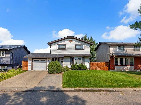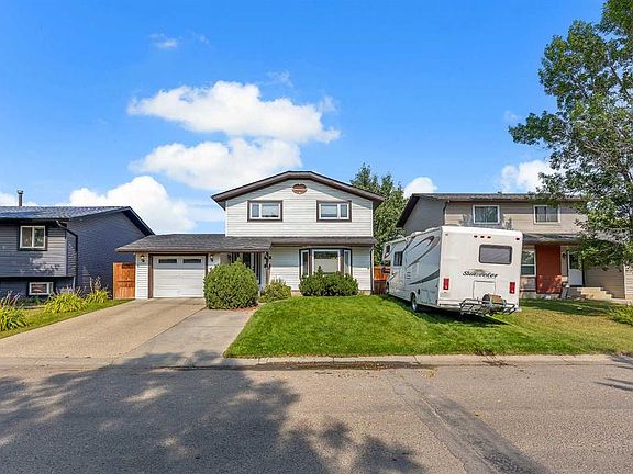 Welcome to this charming home with 2,152 Sqft of developed space. This meticulously cared for property sits on a huge 5,396 Sqft lot nestled in the Castleridge community. This 2 storey home, in an unbeatable location backs onto a Calgary Board of Education Elementary School with a direct gate access into the school premises!!! With its stunning features and versatile layout, this property is truly a dream come true. The front yard is neatly landscaped, with lush green grass kept healthy and vibrant by a built-in sprinkler system that ensures even watering system throughout the lawn. The main floor features an excellent layout, with a cozy living room and a dining area that flows seamlessly unto the spacious deck in the beautiful green backyard. The delightfully enclosed kitchen designed for both function and charm, featuring solid wood cabinets that bring warmth and natural elegance to the space. The cabinetry's rich tones and sturdy craftmanship create a timeless look, while granite countertops add a sleek, durable surface that balances beauty with practicality. The kitchen come large windows overlooking the green backyard with old trees that feel calm and timeless. The upper floor of this home boasts 3 spacious bedrooms. The master bedroom includes separate his & her closets providing tons of space for all your clothes. The full bathroom features a jetted tub for your relaxation and convenience. The 2 other bedrooms are generous in size and properly lit. Heading down the developed basement is a gigantic rec room and a full bathroom. The properly finished basement is perfect for those movie nights and family gatherings. Attached to the side of the home is a single garage, with a driveway big enough to park 3 cars. The side yard of the home features an expansive driveway extension, wide and level. The space offers ample clearance for turning and backing in a full-size RV. It's more like a private RV pad with enough width and depth to also allow for a walking space around the RV, making hookups, unloading, or maintenance hassle-free. The back yard is equally inviting, featuring a generous grassy area surrounded by mature trees. The water sprinklers provide consistent coverage, making it easy to enjoy a green, thriving outdoor space. Worried about the roof? It was replaced only 4 years ago. The home boasts of a 6 months old water heater. Great proximity to grocery stores including Safeway & Superstore, restaurants, Banks, Medical & Dental Offices, Prairie Winds Park and waterpark, schools, buses, C-Train, etc. You will not want to miss this amazing, one-of-a-kind property!