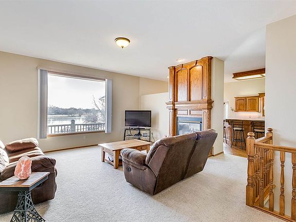 True walkout, east facing, private, large back yard with gorgeous lake view! Fantastic ranch home located on a quiet cul-de-sac in great neighborhood. Lovely curb appeal and great floorplan! Large hearth kitchen with granite countertops, two-way fireplace shared with living room, wood floors, eating area overlooking lake, lots of storage, plus some great built ins! Formal dining room plus eating space in the kitchen. Spacious living room with stunning lake view! Master suite is huge, also with great lake view. Two additional main floor bedrooms are also quite large, and share a Jack and Jill bath -- there is a convenient powder room for guests off the kitchen -- a feature not always found in this price range. The finished basement is a TRUE walkout elevation and includes a large family room with fireplace, full bath, and large fourth bedroom that is being used by the current owners as a workout space, plus a fifth bedroom. This home has one of the prettiest lake views on the west side of Wichita, which can be enjoyed on the large covered deck or the ground level covered patio -- and the east facing back yard is perfect to avoid the west sun in the hot summertime. The home is situated such that the large back yard is quite private, and is made even larger and more private by the adjacent common area. Composite roof replaced in the past 5-6 years, and many of the windows have been replaced with Champion vinyl windows. This is a great home offering a setting and location that you will love!