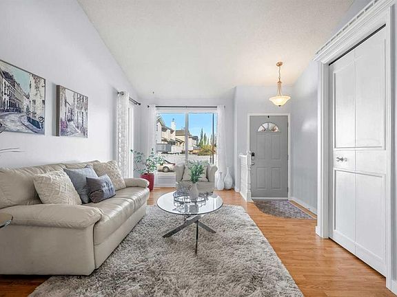 **OPEN HOUSE SUNDAY NOVEMBER 9th 1-3PM** A picture-perfect family home tucked away on one of Sandstone’s most peaceful and coveted streets. From the moment you arrive, this charming home captures your heart with its inviting curb appeal: flower boxes under bright windows, new siding, shingles, eavestroughs, and painted trim (2025), plus a sun-soaked, south-facing backyard ready for garden lovers and outdoor gatherings. Inside, the foyer opens to soaring vaulted ceilings and an airy formal living and dining space wrapped in natural light. Laminate flooring, a soft grey palette, and a beautiful wood-spindled staircase create a warm yet refined first impression. Toward the back, you’ll reach the heart of the home with an updated kitchen that shines with quartz countertops and backsplash, stainless steel appliances, and a quaint corner sink framed by dual windows overlooking the backyard. Adjacent is the breakfast nook with a picture window capturing the morning light, complemented by lovely wood accents that subtly connect each level. Step down to the cozy family room with a brick-faced wood-burning fireplace — perfect for quiet evenings or visiting with friends and family. French doors open to an oversized deck and patio, surrounded by a private, fenced yard with a raised garden bed, an oversized south-facing patio, and a charming gazebo. This level also features an updated half bath, a convenient laundry area (with pocket door separation), and access to the double-attached garage. Upstairs, you’ll find brand-new carpet (2025), a charming linen station with a quartz countertop, and three spacious bedrooms. The primary retreat overlooks the sunny backyard and offers dual closets and a beautifully renovated ensuite with quartz counters and a walk-in shower. Two additional bedrooms easily accommodate queen beds and share a fully updated main bath finished in timeless tile and quartz. The lower level is thoughtfully designed for family living and entertainment, featuring a full projector and surround-sound system for movie nights, a home gym or office area, abundant storage, and a brand-new high-efficiency furnace (2025) that ensures year-round comfort and peace of mind. Perfectly located on a very quiet and private street, 1/2 a block from an off leash dog park, walking distance to both a Public and Catholic Elementary schools schools, park, tennis courts, and outdoor skating rink. This home blends modern updates with timeless character. It is move-in ready, lovingly maintained, and waiting for the next family to make lasting memories.