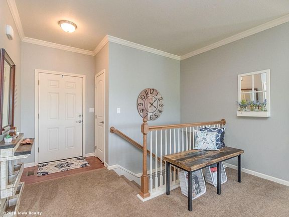 Fall in love with this immaculate NE Ankeny ranch NO backyard neighbors As you step inside be impressed with the newly painted interior, open kitchen SS appliances and tile backsplash, & family rm 9ft ceilings & beautiful crown molding. Let the natural light shine from the gorgeous windows looking out to the great yard landscaping & irrigation. The master is spacious with dbl doors leading into the bathroom & walk-in closet. This home gives you options main level office French doors and 2nd bdrm with built in Murphy bed Don't need an office-room would easily convert to a 3rd bdrm. Retreat to the daylight bsmt family room fireplace, ¾ bath & lrg closet. Enjoy the newer carpet, Nest stat, bsmt pre-wired for surround sound & 2nd laundry hook-ups, gas line to deck, custom shutters & hose bib in 3C garage. The unfinished area of the bsmt can easily accommodate 2 additional bdrms & still have plenty of storage. Enjoy a quick commute easy access to Ames, Downtown, & WDM