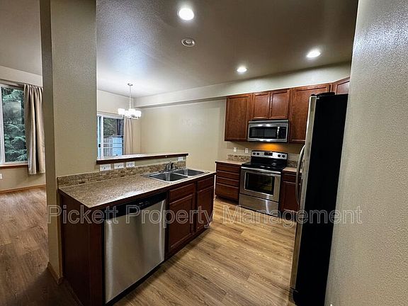 Step inside this 3-bedroom, 2.5-bath townhouse with all new flooring, update paint, and open floor plan. The main living areas offer excellent flow, making it easy to relax, work from home, or host friends and family. Gas fireplace to keep warm on those chilly nights. The kitchen provides plenty of cabinet space and an efficient layout ideal for everyday cooking. All three bedrooms are on the second level with the Primary bedroom including two closets. Washer and dryer included for your convenience. Third Floor has a spacious media room for hobbies or entertaining including a custom closet. Outside, you'll find a private yardperfect for outdoor dining, gardening, or simply enjoying the fresh Pacific Northwest air. Great local community, close to shopping, bus lines and CK schools. Small to medium pets possible with approved third-party pet screening, additional $500 deposit per pet, and $35 a month pet rent, per pet.