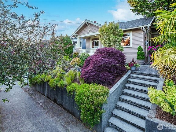 Ideally sited just steps to all of Phinney Ridge's charming shops and restaurants, this light-filled reimagined craftsman home has it all. Beautiful period details meld with exquisite updates. A rocking chair front porch greets guests and invites them in to find light-bathed living and dining rooms with stunning leaded glass windows, a gorgeous tile-laden fireplace and original pristine hardwoods. The remodeled kitchen delights with beautiful custom cabinetry and high-end appliances including a chef's dream gourmet stove. Two serene guest bedrooms and a spa-inspired bath also await. Downstairs impresses with an awesome media/rec room with built-in bar and an additional tranquil guest suite. Breathtaking grounds and a 2+ car detached garage!