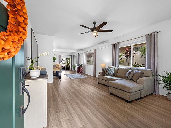 Majestic ocean views await from this beautifully maintained single-level home in the highly desired Highlands at Kehalani. This spacious 3-bedroom, 2-bath residence offers a 1502 sq. ft. open concept floor plan with 9-foot ceilings, luxury vinyl plank flooring and modern appliances. The dark cherry cabinetry with soft-close drawers and doors complements the solid surface countertops, creating a refined and functional kitchen space. Enjoy year-round comfort with two split A/C units and solar water heating for energy efficiency. Take in the stunning ocean vistas and tranquil mornings from your back lanai, surrounded by tropical foliage within a beautifully landscaped and fenced back yard. Come see and experience this lovely home for yourself - a true blend of comfort, elegance and island living. Enjoy the neighborhood park, walking paths and close proximity to downtown Wailuku with schools, shops and restaurants.
