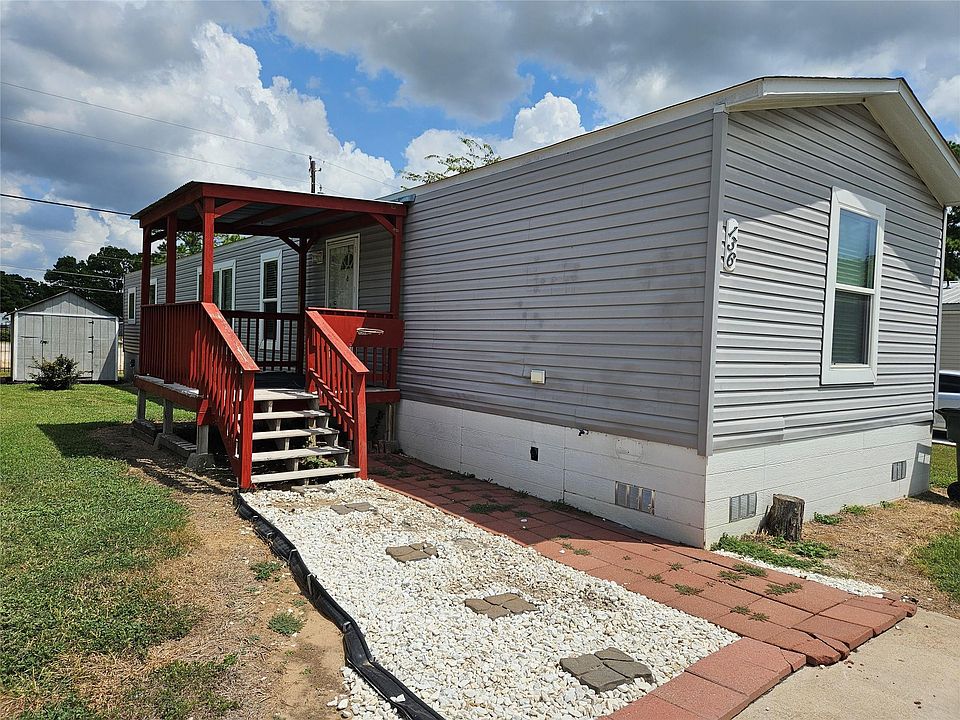 Nestled at 136 Navasota, Bastrop, TX 78602 in Bastrop County, this inviting home from 2018 is ready for you to move in and start creating memories. Imagine preparing culinary masterpieces in the kitchen, complete with a backsplash that adds a touch of elegance, shaker cabinets providing ample storage, and a wall chimney range hood that makes a statement. The large kitchen island offers plenty of space for meal preparation or casual dining, while the kitchen bar provides a charming spot to enjoy morning coffee or evening cocktails. The bathroom is designed for relaxation and convenience, featuring a walk-in shower for a spa-like experience and a double vanity, offering plenty of space for your morning routine. Unwind and refresh in this well-appointed space. This property also boasts a walk-in closet for all your wardrobe needs, a dedicated laundry room for added convenience, a shed for extra storage, and a deck perfect for outdoor enjoyment. This mobile home offers a blend of comfort and functionality, creating a wonderful place to call your own. Ask listing agent about move in special