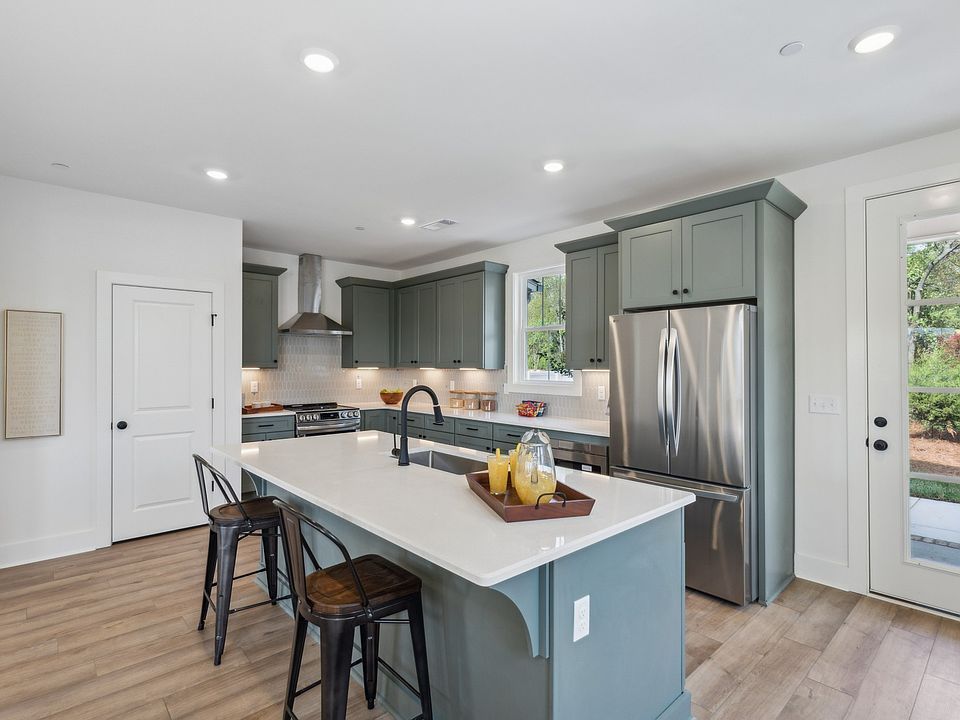 Beautiful lvp flooringPlenty of kitchen cabinetsBeautiful backsplashPlenty of natural lightUnder cabinet lightingQuartz countertopsOversized walk-in closets