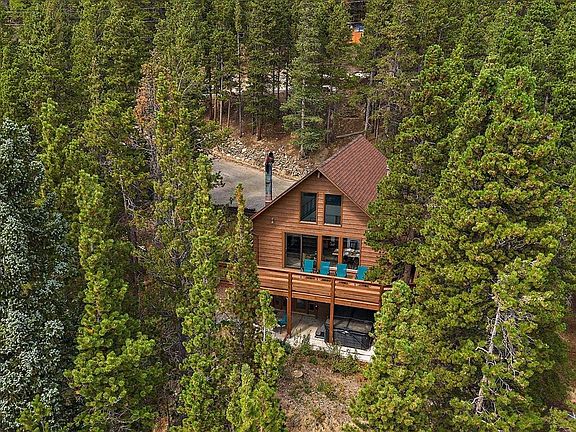Welcome to your private mountain retreat! Nestled among towering pines with sweeping forest views, this charming cabin blends rustic character with modern comforts. From the moment you arrive, the peaceful setting sets the tone—serene, secluded, and just steps from nature’s playground. Inside, the vaulted great room features a dramatic wood-beamed ceiling, floor-to-ceiling windows that flood the space with natural light, and a stunning stone fireplace perfect for cozy evenings. The open layout flows seamlessly into the dining area and updated kitchen, complete with sleek cabinetry, granite counters, and stainless steel appliances. With multiple bedrooms—including a loft-style primary suite—there’s plenty of room for family and guests. The lower-level rec room invites fun and relaxation with space for games, media, and walk-out access to the hot tub patio. Outdoors, a wraparound deck is ideal for morning coffee, dining under the trees, or stargazing on crisp Colorado nights. Adventure and convenience are never far—just 25 minutes to the quaint shops and dining of downtown Idaho Springs, 40 minutes to Loveland for winter skiing, and about an hour to world-class terrain at Winter Park. If outdoor adventure is not your style, head on over to Black Hawk or Central City and give the casinos a try. As a homeowner in St. Mary's, you’ll also enjoy access to two private neighborhood ponds, perfect for fishing and summer afternoons for an annual fee. The home is being offered fully furnished, for an additional fee, so whether a full-time residence or weekend escape, this mountain home offers the perfect balance of comfort, character, and Colorado adventure.