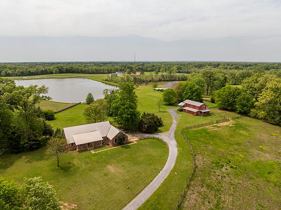 Oktoc! 19.5 acres fenced for horse lovers featuring ranch-style home, open floor plan, 3BR/2.5BA. Walk in shower. Office. Lge windows providing gorgeous views of a shared 20 acre stocked lake with private pier. Front and back covered porches. The well equipped barn offers 2 paddock stalls & 1 BR apt. perfect for guests, rental income or live in caretaker. An additional storage building is on site, tucked away out of view. The acreage offers gently rolling terrain creating a private and tranquil setting.