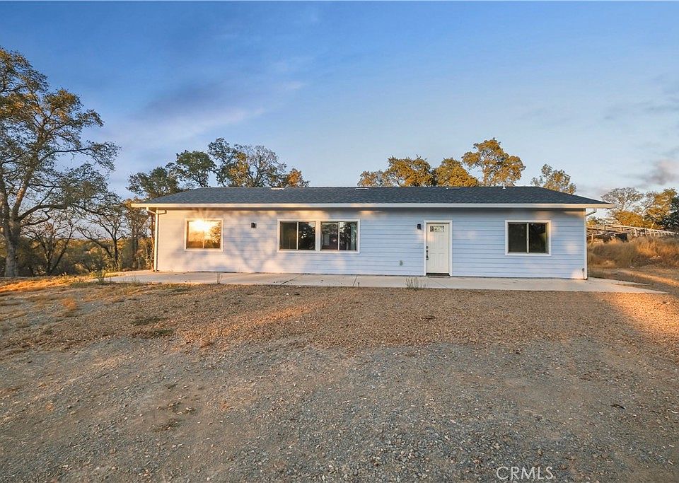 The property is fenced and cross-fenced, providing a secure and private backyard area. It includes a horse corral area and a sturdy pole barn, making it well-equipped for animals. The pad has been poured for a detached 2 car garage. Mature oak trees throughout the acreage add shade and character to the landscape.