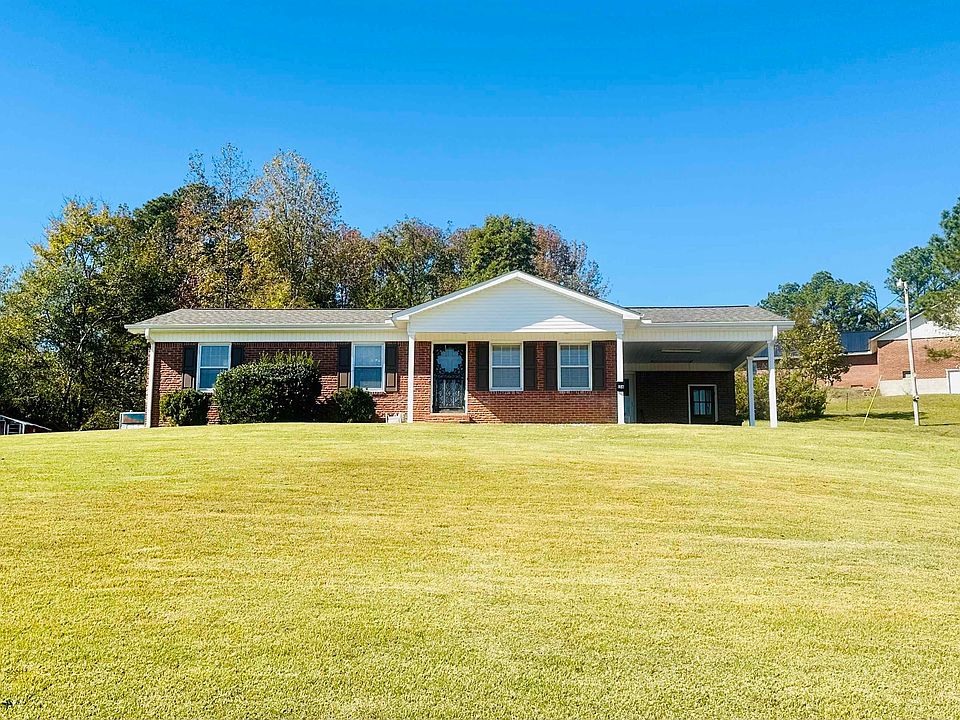 Welcome to this stately 3 bedroom, 2 bathroom brick home, perfectly situated on 2 serene acres of land! Inside, enjoy the spacious living room with vaulted ceilings, creating a sense of grandeur and openness. The kitchen boasts tile flooring, appliances, and beautifully updated cabinets and countertops – perfect for culinary creativity! Retreat to the large primary bedroom featuring his and her closets for ample storage and a walk-in shower. Outside, relax on the inviting covered patio or park with ease in the carport – perfect for protecting your vehicle from the elements. Schedule a tour today and make this charming brick home yours!