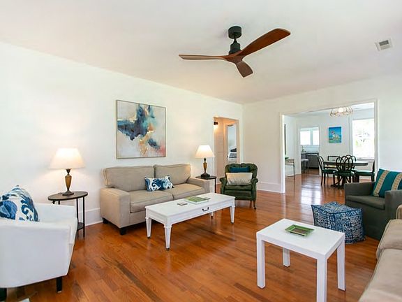 Maximum of 4 preferred thru 1 Queen bed, and 2 Twin Beds with our linens . At approx 1,174 SF, this lives large for a 2 bedroom freestanding home. If renter desires to bring 1 pet, then renter shall share general info on pet at time of making a Booking Request. If Owner agrees to allow the pet, then a nonrefundable pet fee shall be included in the booking. Easy keypad access for secured entry at the house. Rental agreement for Renter review and agreement.