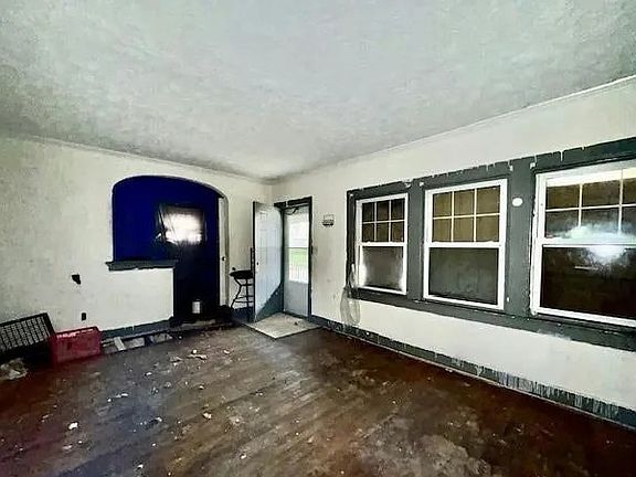 This 3-bedroom, 2-bathroom home features original charm throughout, including hardwood floors, crown molding, a decorative brick fireplace, coved archways, and generously sized rooms. The home is set on a slight hillside with a wrap-around porch that provides beautiful views of the neighborhood.