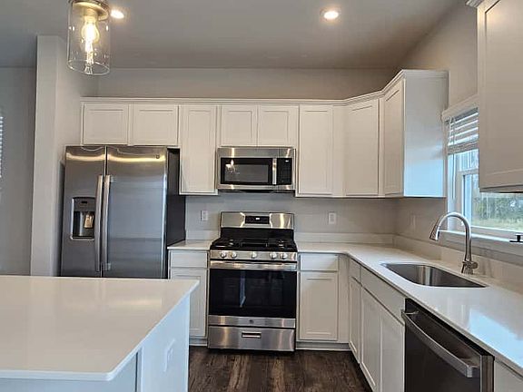 Discover this inviting end-unit townhome, featuring an open-concept living space that seamlessly connects the kitchen, living room, and dining area. The kitchen is a chef's delight with beautiful Forteleza Granite countertops, soft-close grey shaker cabinets, and a spacious pantry.