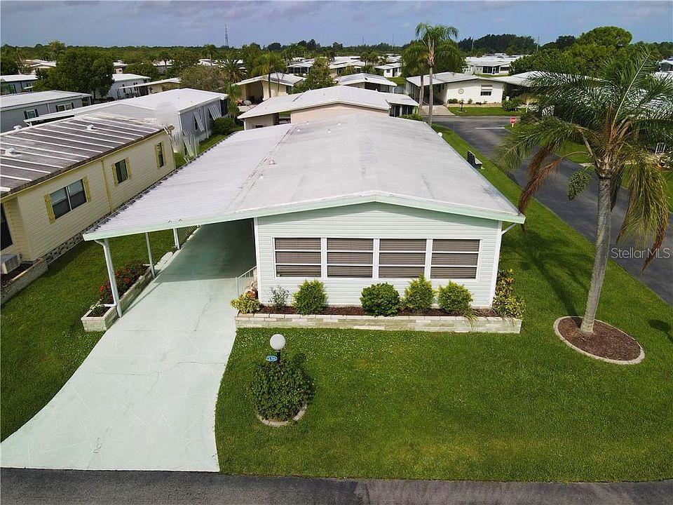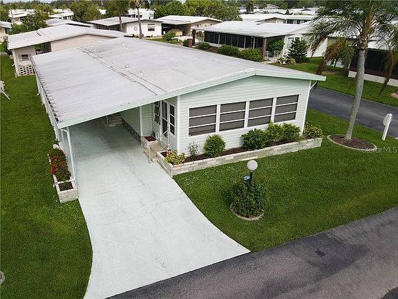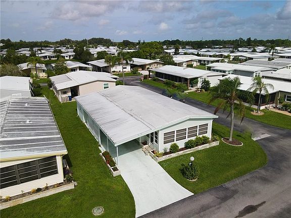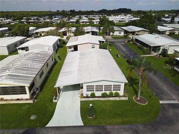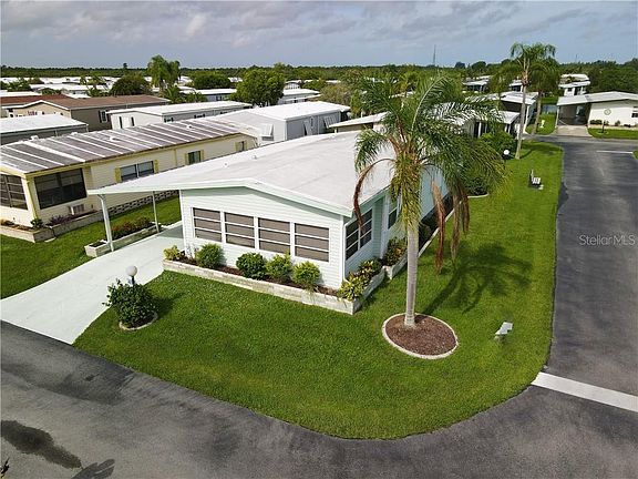 This bright, spacious home sits on a large corner lot in the Lazy River Village pet section. Clean, uncluttered and freshly painted, the home features new 12-mm laminate flooring throughout over a ¾" plywood subfloor. Along with new appliances and furniture, the home has a large, eat-in lanai with an easy-to-maintain ceramic tile floor. Air conditioner replaced in 2013. Conveniently located within a five-minute walk of the clubhouse and recreation facilities, this home is located in a quiet section of the park, steps away from the marina and sunset point. Lazy River Village is the friendliest and most active community along the Myakka River. The community boasts an updated marina with spaces available to rent, there's even kayak and canoe storage located right next to the kayak launch and boat ramp. Enjoy the state of the art fitness center as well as pool, spa, tennis, pickle ball, bocce and yes shuffle courts too! For the hobbyist there's an amazing and very well equipped wood shop, crafting, quilting, cards and more! THERE IS CURRENTLY A RENTER STAYING IN HOME, PLEASE GIVE 24 HOUR NOTICE PRIOR TO SHOWING. tHANK YOU!