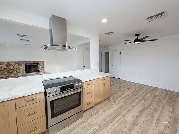 Stylish Living with a Modern Touch. This move-in ready residence has been tastefully refreshed with new luxury vinyl floors and contemporary updates throughout. The kitchen showcases stainless-steel appliances, a Bosch range, and modern cabinetry that enhances both form and function. Bright recessed lighting complements abundant natural light to create a welcoming, airy feel. The living area features a cozy fireplace, perfect for relaxing evenings at home. Each of the four spacious bedrooms is outfitted with modern ceiling fans for year-round comfort. Outside, enjoy a tasteful patio deck ideal for outdoor dining or entertaining. Nestled in a quiet cul-de-sac, this home offers privacy and a family-friendly setting. The attached two-car garage adds convenience and practicality. With its modern look and carefully chosen finishes, this property blends comfort, design, and livability for today's lifestyle.