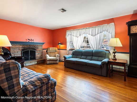 This sprawling ranch in the Laurelton Heights section of north Brick has been lovingly maintained! It boasts 3 bedrooms all with hardwood floors, 2 full baths, and a great flowing floor plan. The large living room with a gas fireplace and huge dining room have hardwood also, and the kitchen features a brick wall oven with endless possibilities to customize it and make it your own! There's a central vacuum system throughout, a large full basement, mostly finished, and the backyard has an in ground swimming pool with plenty of space for entertaining in this park like setting and a large shed for storage. The home sits on a 100 X 100 lot with a sprinkler system in a great contained neighborhood. There's so much potential here, come see this beautiful home today!!