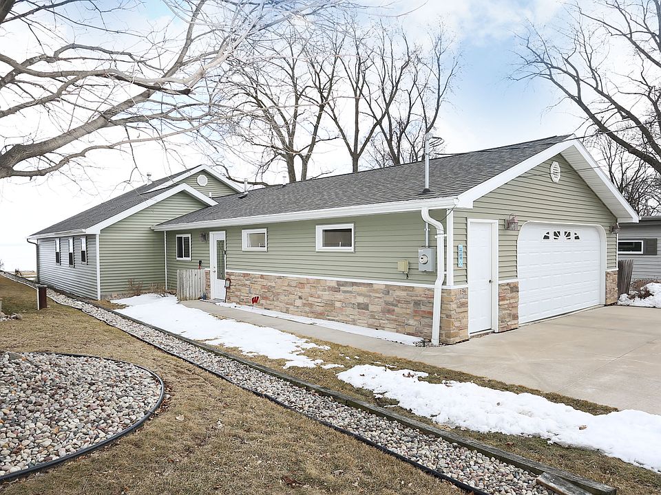 Located on the sandy bottom shores of Lake Winnebago with 50+/- sq feet of frontage. Whether you are looking for a year-round retreat or weekend getaway this 3 bedroom, 2 bath lakefront home is just what you have been looking for! The large gourmet kitchen is the perfect gathering place with a breakfast bar, granite counters, maple cabinets, and stainless steel appliances. The open concept family room offers gorgeous lake views, cathedral ceilings, and gas fireplace with beautiful built in bookshelves. The large master suite is the perfect sanctuary with a large spa-like master bath to include dual vanities, a soaking tub, and shower with new glass door. With 2 additional bedrooms and a second full bath with dual vanities there is plenty of space for everyone! Property includes an additional 50x 60 lot with shed. Attached 2 car garage and professional landscaping are a few other bonuses! Numerous updates per seller include asphalt on the private road, shed on additional lot, roof repairs, dock, leaf guard on gutters, encapsulated crawl space, rebuilt sump pump well, dehumidifier in crawl space, insulated attic above garage, refrigerator, dishwasher, R/O system, water softener, water heater, and so much more! This home has been pre-inspected and comes with a 1 year HMS home warranty. Welcome to the lake!