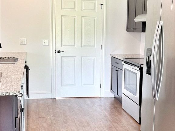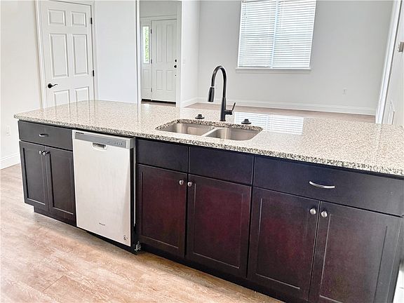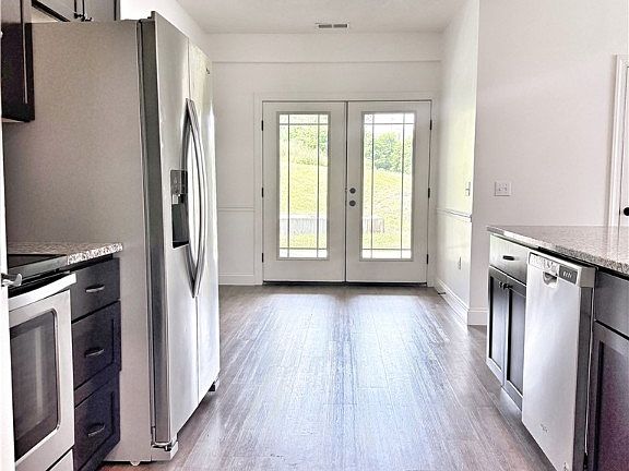 Private patioOpen floor planQuartz counter-topsMain floor laundry areaCeramic plank flooringCustom kitchen cabinetryDesignated dining area