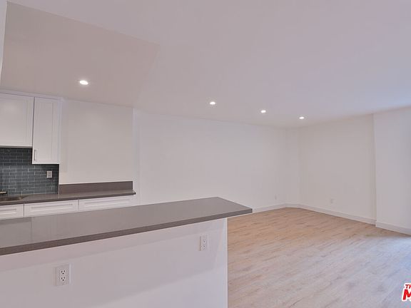 This modern 1 bedroom apartment features an open concept living area with wood style flooring, recessed lighting, and a beautifully updated kitchen with quartz countertops, sleek cabinetry, and a stylish glass tile backsplash. Large sliding doors lead to an oversized private patio, perfect for entertaining or relaxing outdoors. Freshly renovated and filled with natural light, this home offers a comfortable layout with contemporary finishes in a prime location.